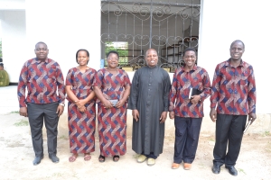 Paroko mpya wa Parokia ya Bikira Maria Mama wa Mungu, Mbopo-Madale, Jimbo Kuu Katoliki la Dar es Salaam, (wa tatu kutoka kushoto), akiwa katika picha ya pamoja na Viongozi wa…